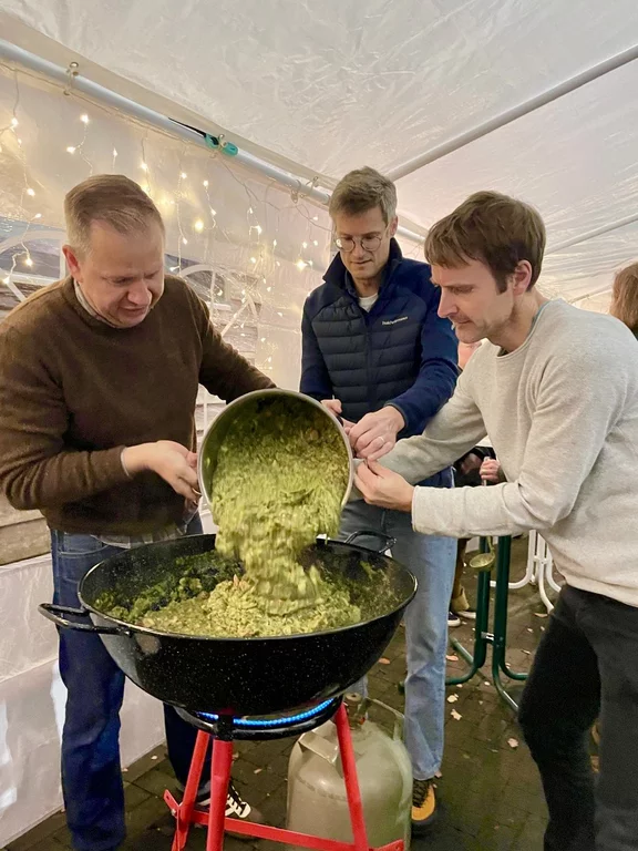 Als kulinarisches Highlight erwartete uns Henning mit seinem köstlichen Grünkohl – ein echter Genuss und schnell Gesprächsthema Nummer eins. Dazu sorgten liebevoll angebrachte Weihnachtsdeko, Glühwein, Stauder und süße Leckereien für die perfekte Wohlfühlstimmung. Auch unsere neuen ETB-Mützen und Schals fanden großen Anklang und wechselten zahlreich den Besitzer.